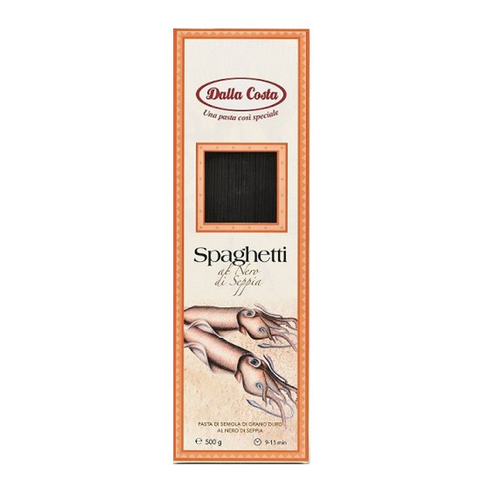 O Spaghetti al Nero di Seppia é uma massa muito aromática e de sabor único que leva em sua composição sêmola de grano duro, tinta de lula, água, peixe em pó e suco de limão. O corte da massa é realizado com faca em bronze, o que garante maior porosidade quando cozida, realçando ainda mais seus aromas e sabores.